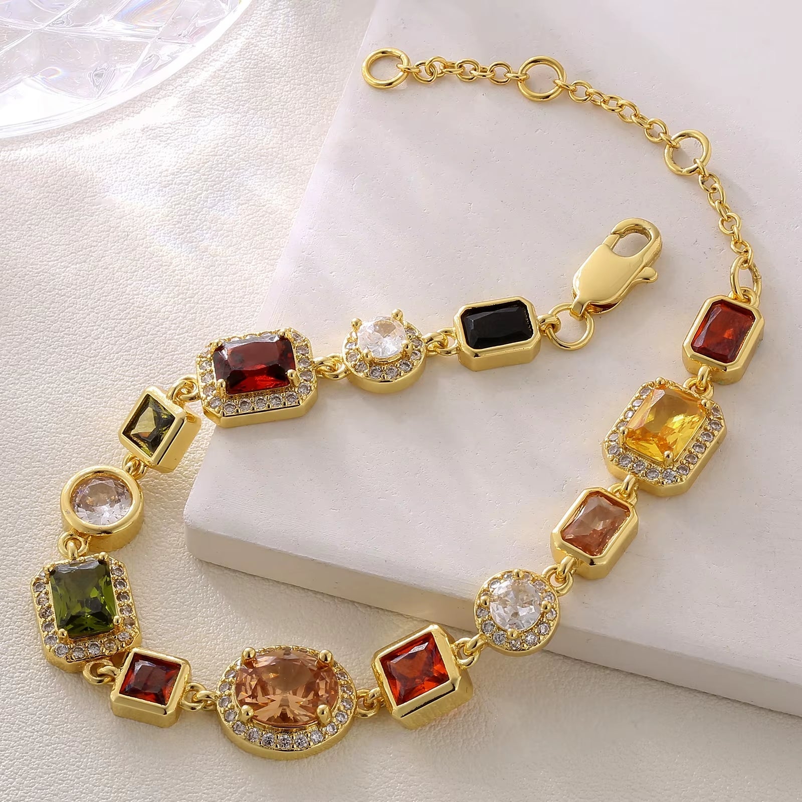 Magas minőségű rézötvözetből készül, prémium arany vagy ezüst bevonattal. Ez az unisex karkötő a minimalista dizájnt színes kőberakásokkal ötvözi.